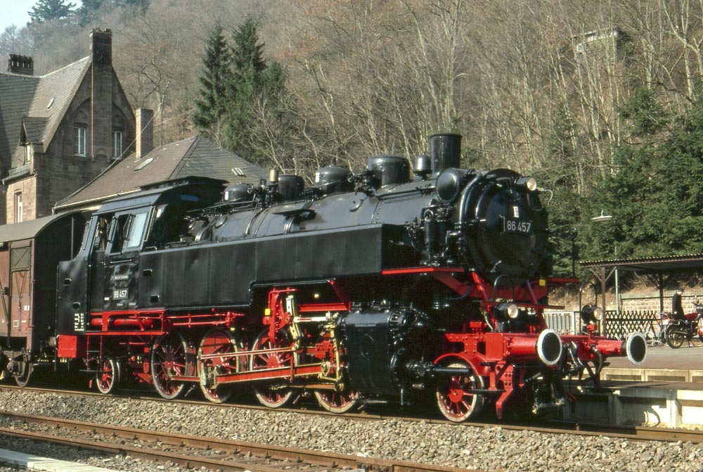 Auch sie verbrannte ebenso wie 45 010 und 01 150 und 23 105, auch V200 002, V80 002, V60 150 und weitere. Hier bei ihrer Lastprobefahrt im März 1985 in Kyllburg. |