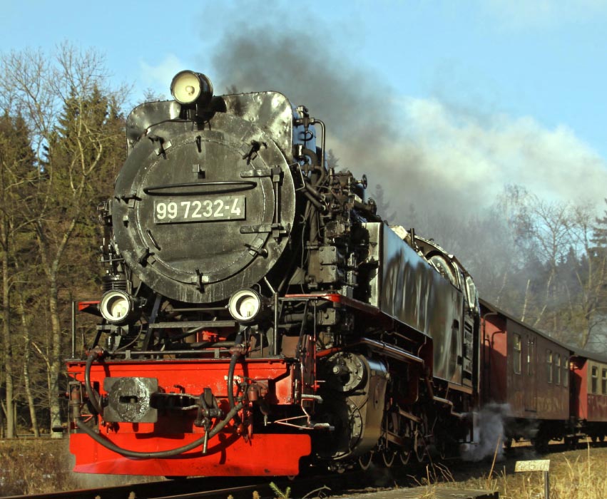 Links ist der Zusatzzug 89201, der nur zwischen Weihnachten und Neujahr verkehrte, in der Nähe des Gasthauses Drei Annen, dort, wo die Sonne gerade ein paar Minuten hinkommt.
