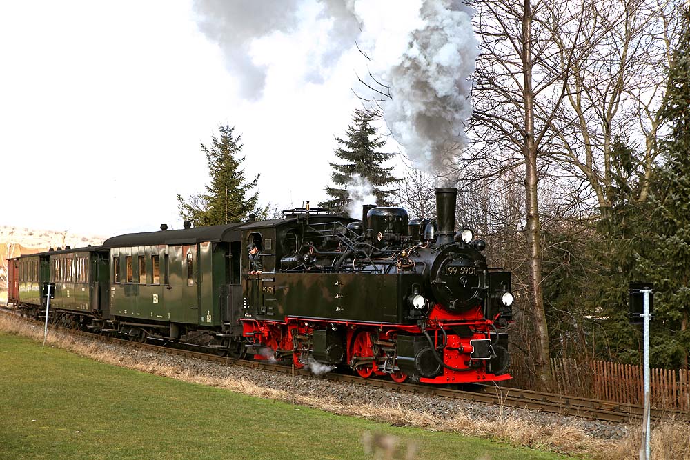 Volker und Tino warten mit ihrer 5901 auf den Planzug aus Quedlinburg, weil sie diesem im Blockabstand bis Alexisbad folgen werden... Zwei Mallet-bespannte Züge kurz hintereinander, so etwas hat es lange nicht mehr gegeben ... |