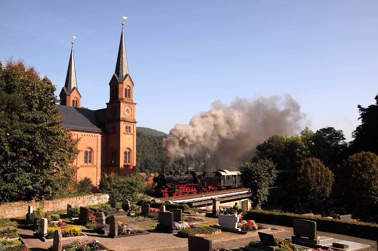 Gerade rechtzeitig wurde das Gerüst von der Kirche in Wilgartswiesen entfernt ... aber die Uhren noch nicht nei einjustiert. Aufgrund der langen Schatten und des kurz vorher noch endgültig abziehenden Nebels war es ein dann doch das absolute Supermotiv. Unverständlich, warum es von den etwa 60 Fans, die dort waren, nur etwa 10 wahrgenommen haben ... |